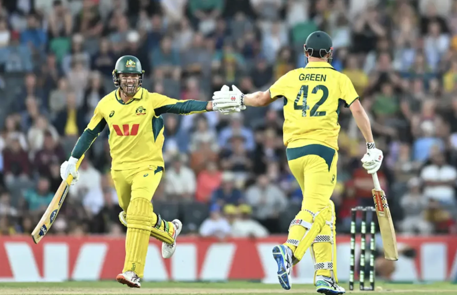The following ball, a quicker one, prompted Green to kneel and launch a slog sweep onto the roof at square leg, the bat’s crack echoing through the stands. A shorter ball followed, pulled over deep midwicket for another six, despite imperfect timing. These three consecutive sixes propelled Australia to 377/2, a moment that crushed South Africa’s spirit.